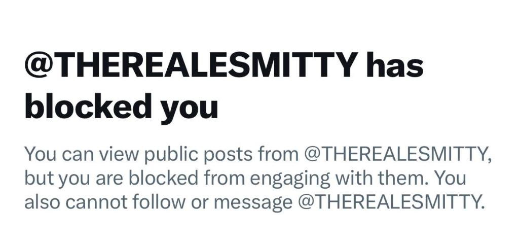 then this happened just like a coward he blocked me. This is bitch shit and I won’t have it.